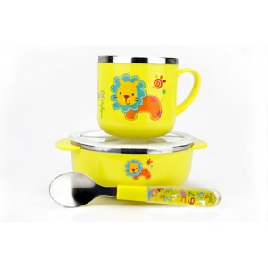 • 防燙耐摔不銹鋼兒童餐具-黃色獅子